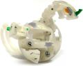 BakuFrost has a white creamy looking color to it along with one or more accent color. The accent color(s) has nothing to do with the attribute at all; instead of the Bakugan being the color that goes with its attribute there is a small sometimes unnoticeable accent that matches the Bakugan's attribute. The accent colors may seem to be lighter or more metallic then the natural color.