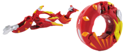 Raytheus is a Bakugan Mobile Assault that spins and twists at lightning speed as it rolls with Dragonoid fitting perfectly into its center. At top speed, its razor sharp metal blades flash as Raytheus unfolds, to take on its full riding capacity piloted by Dragonoid.