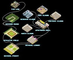 The School was the perfect grounds in Bakugan Dimensions to learn how to brawl, and to school others in the art of brawling. You could talk to Marucho in The Lab right off of Newbie Road for excellent battle tips or you could challenge Jake to an all-out Brawl in front of the school.